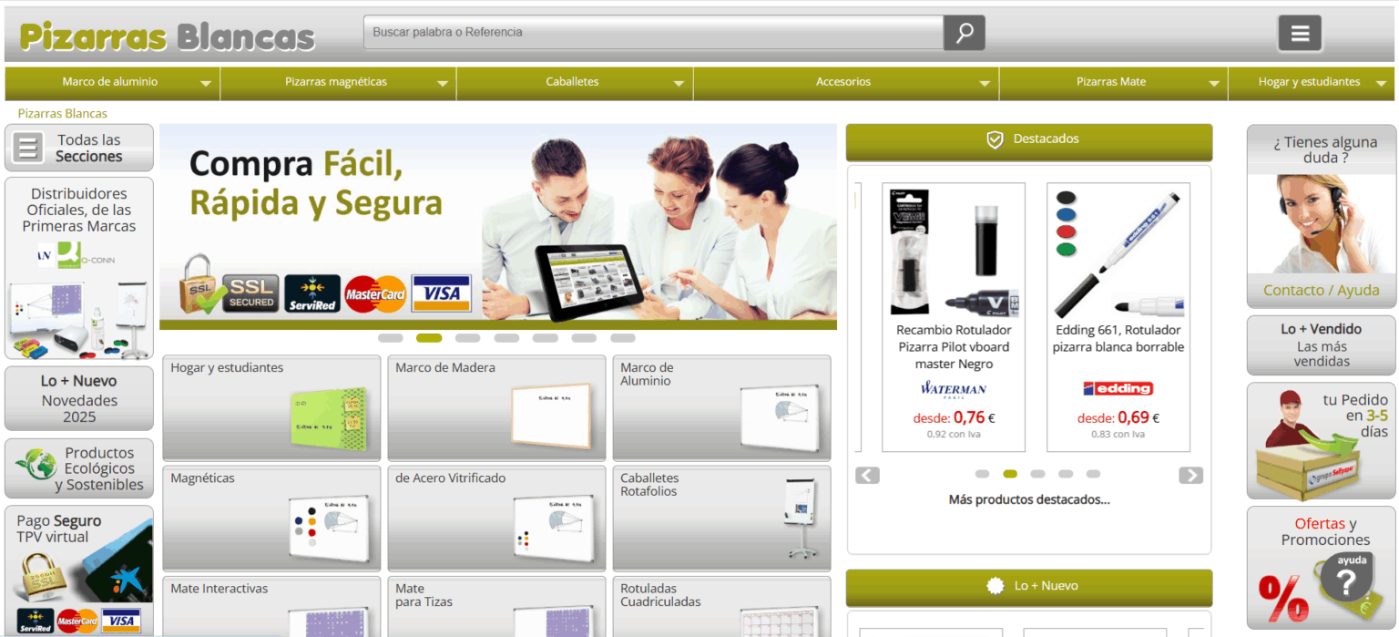 En esta tienda de pizarras blancas, encontraréis el mayor surtido posible. Son uno de los principales distribuidores de España, de las marcas más conocidas en este tipo de productos, entre las que destaca el fabricante Faibo que cuenta en su catálogo con el mayor surtido que podemos encontrar de tipos, tamaños y precios. Los precios son muy buenos, y mejoran considerablemente compramos varias unidades del mismo modelo. En la mayoría de los casos el envío a domicio es gratuito y nos ofrecen una atención al cliente profesional.
